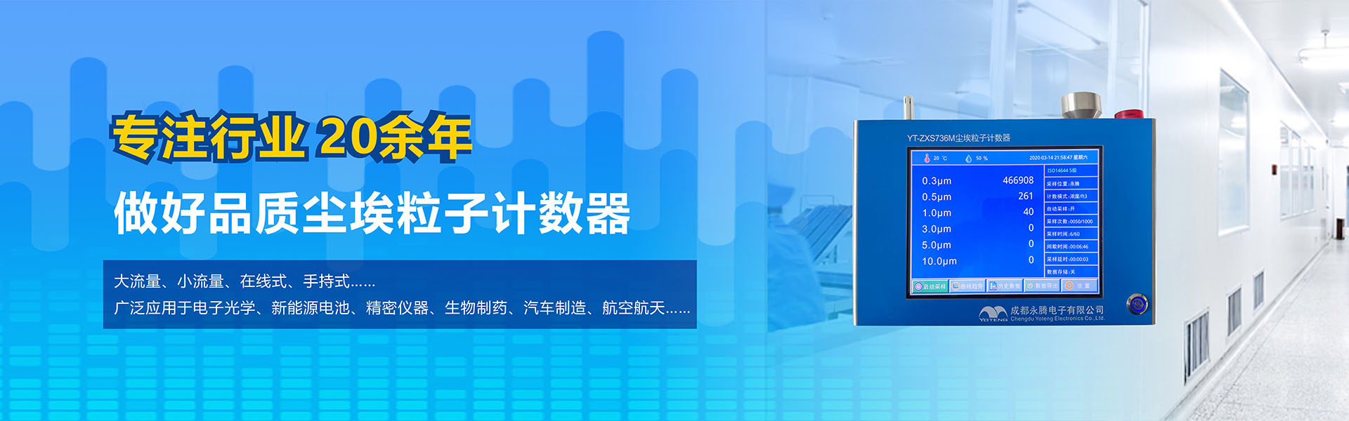 成都永騰電子有限公司位于成都市國家經(jīng)濟(jì)技術(shù)開發(fā)區(qū),是一家專業(yè)從事環(huán)境空氣監(jiān)測(cè)儀器研發(fā)、生產(chǎn)、銷售于一體的高科技企業(yè)。產(chǎn)品涵蓋空氣檢測(cè)儀器、潔凈間在線塵埃粒子計(jì)數(shù)器監(jiān)測(cè)系統(tǒng)、大氣顆粒物監(jiān)測(cè)微站系統(tǒng)、電化學(xué)分析儀器、實(shí)驗(yàn)室設(shè)備等產(chǎn)品。
